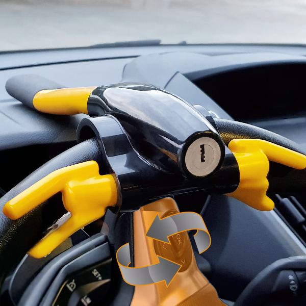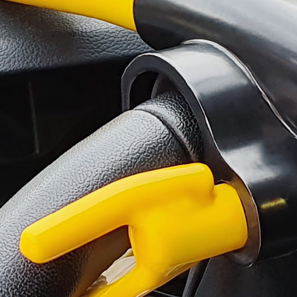 Además de su función mecánica, el propio diseño actúa como elemento preventivo. Su color amarillo de alta visibilidad y su posición sobre el salpicadero permiten verlo fácilmente desde el exterior, lo que reduce considerablemente el riesgo de intento de robo al transmitir una imagen clara de protección. El sistema de cierre está pensado para el uso diario.