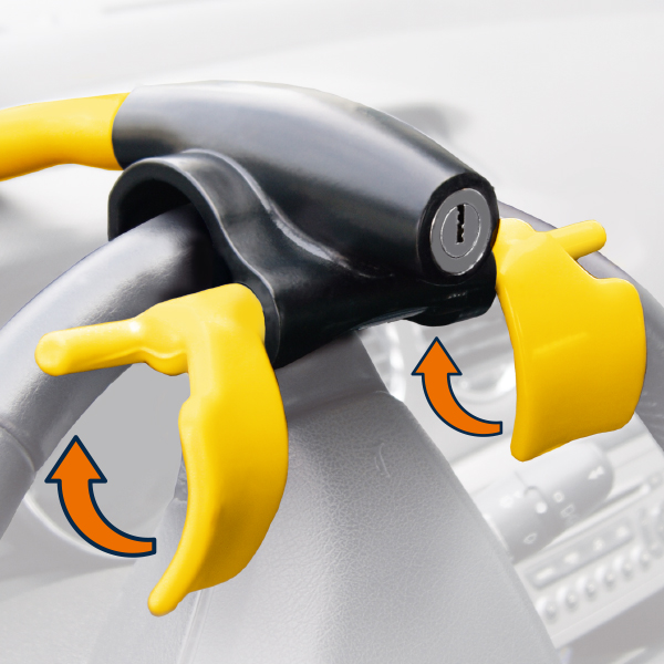 Gracias al sistema Push Locking, el dispositivo puede cerrarse rápidamente sin necesidad de utilizar la llave: basta con colocarlo sobre el volante, cerrar los brazos articulados y el antirrobo queda bloqueado.